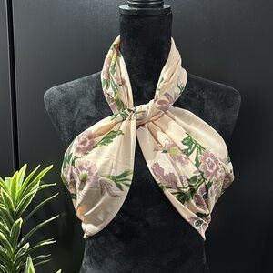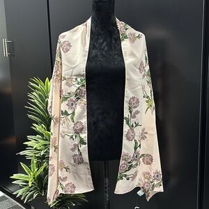 Sheer Oblong Scarf, peachy tan with lavender and green florals
