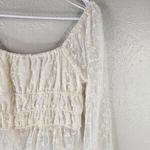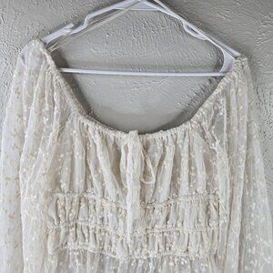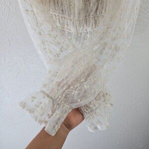 Sheer Off Shoulder Blouse M White Smocked Bell Sleeve Coquette Fairy Boho Top by Japna (H)