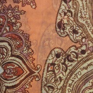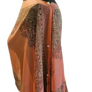 A versatile scarf featuring a detailed paisley pattern, soft sheer fabric, and pearl button accents. Enhances both casual and formal outfits effortlessly.