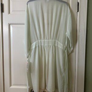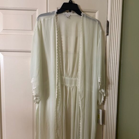 This robe has never been worn and is in excellent condition; the tags are still attached. The color is a very faint green, from far away it appears white. On the tag, the color is identified as "Pale Sage."