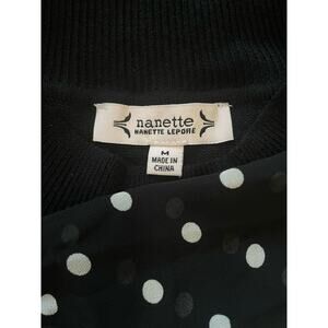 Sheer Polka Dot sleeve Sweater, Black Knit High Neck, Nanette Lepore, Ladies Med