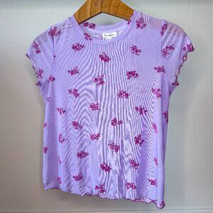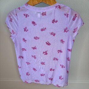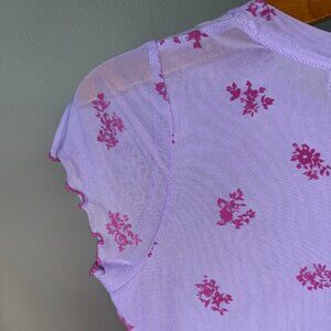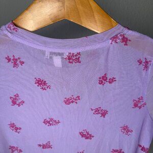 Sheer Purple Velvet Floral Appliqué Tee • Y2K Mesh Baby‐Doll Top • XS/S
