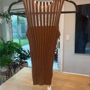 Elevate your style with this elegant brown sleeveless top. Perfect for any occasion, this top offers a chic and modern look. Brand new, never worn by The Commense.