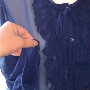🦋 Sheer, Ruffle Navy Button Down Blouse