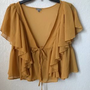 Mustard sheer ruffle self tie top
