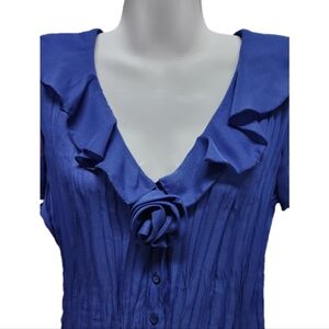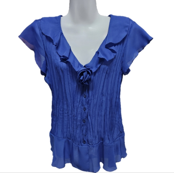 Sheer ruffled sleeve and collar button down top.