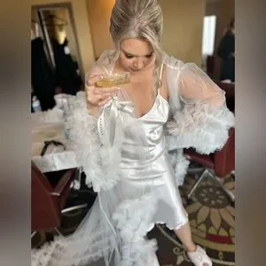 Sheer bridal robe featuring ruffled sleeves. Perfect for special occasions or wedding day!