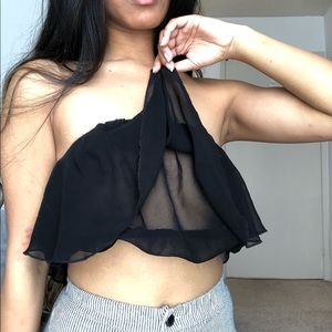 Flowy, sheer, black tube top. Ruffled ALL detail ALL around.