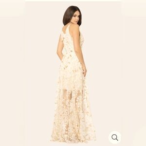 Xscape gown - Size 6. Brand new with tags. These pictures do not justify the beauty, elegance, and detail. It's the one of a kind dress that will make you stand out. Ivory color with gold accents. The detail is absolutely stunning. I am 5'7 ", and the gown is floor-length.