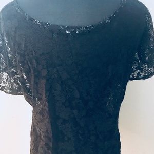 Soprano Sheer Shirt with lace back, pairs perfect with jeans for a fun night out! Size M