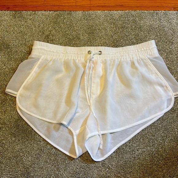 Victoria Secret size S sheer white shorts with a drawstring. Sexy swim cover. They are see through. Athletic style. Never worn beautiful condition.