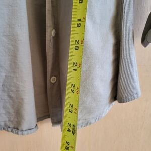 Our Contrast Panel Shirt is made in our classic 100% cotton slub. This style uses the reverse side of the fabric for added texture and has contrast ribbed panels at side and sleeves. Style has a collar, button front closure, two front chest pockets and a curved bottom hem. Garment dyed with extra softeners for a soft, lived in feel.