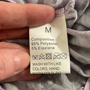 This purple sheer floral print teddy is ruched in front, has a ruffle hem, and adjustable straps. It is silky to the touch and has lots of stretch.