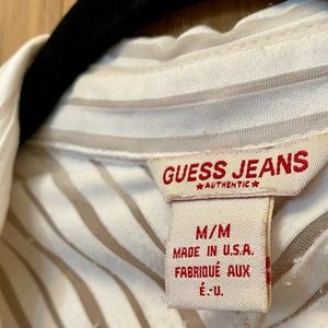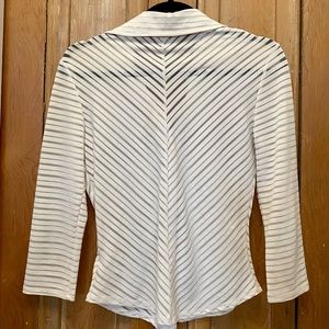 Sheer Striped and White Button Up Blouse in soft stretch material.