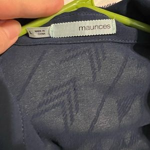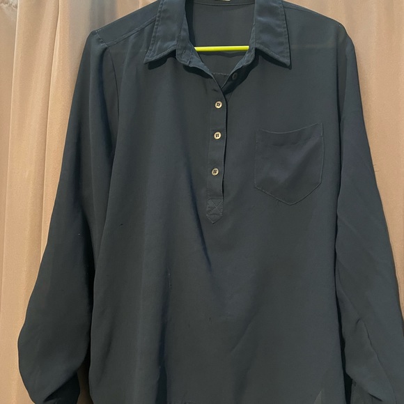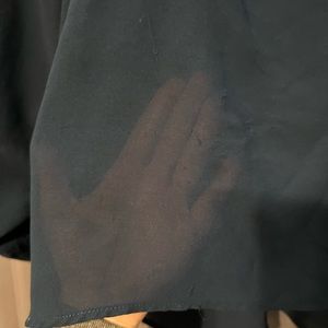 This is a sheer top that has some wear. Piling is happing but not super noticeable. Not in perfect condition by any means! Can wear with a tank under or just a cute bra! Has a high/low effect and can be tucked in the front. This does run a bit small