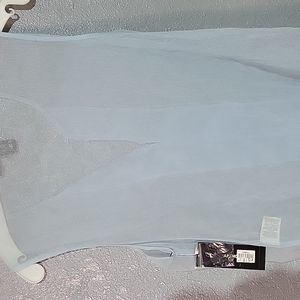 Sheer DKNY babyblue shirt. It has a stain on the top left shoulder in the back (shown in poc)hardly noticeable.
