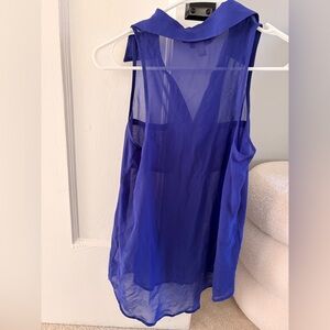 Elevate your style with the Blue / purple Sheer Women's Top. Perfect for any occasion, this top offers a chic and modern look. Longer in the back. Nice slightly flowy relaxed fit