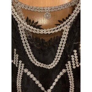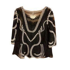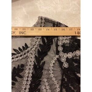 Sheer Top Women’s Black White Embroidered 3/4 Sleeve Blouse Sz M