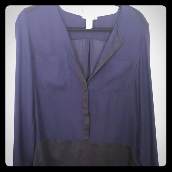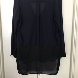 Super light weight sheer tunic. High-low, color block blue and black, with black strips on shoulders