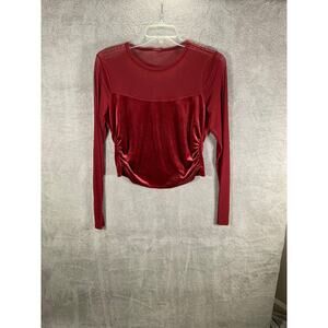 Sheer Velvet Top Women's Large Deep Red Mesh Cropped Whimsigoth Fairy Baddie