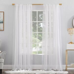 Sheer Voile Mallory Rod Pocket Curtain Panel, 59" x 96", White 2 Panels