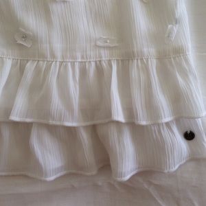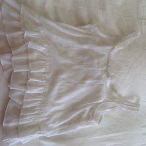 Like new Abercrombie white tank top with ruffle, flower, and beaded detailing.