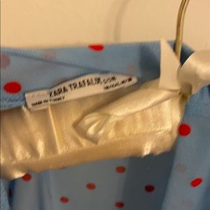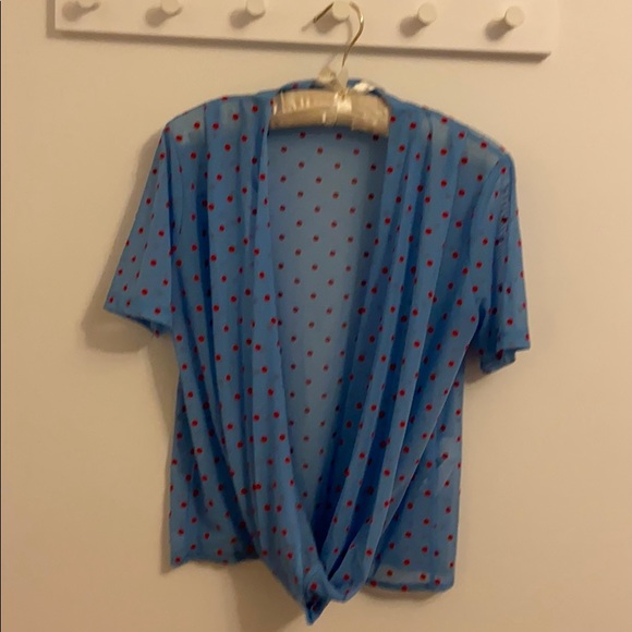 Sheer blue top with red polka dots purchased from Zara in Florence, Italy.