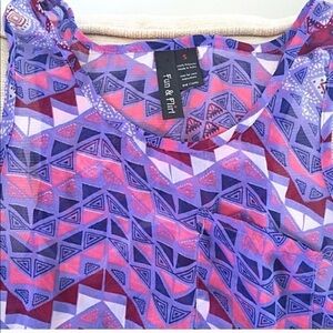 NWOT, flawless. Flowy & light sheer, 100% polyester. Front chest pocket. Measures approx 26" long, 18" flat across bust. Size small.