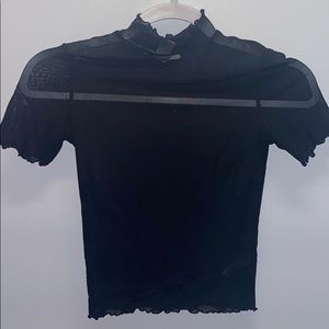 Sheer black short sleeved shirt with ruffling on edges. Size XXS