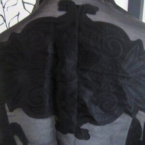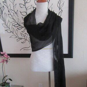 Sheer black shawl scarf with floral & paisley black on black patterns 78" x 21"