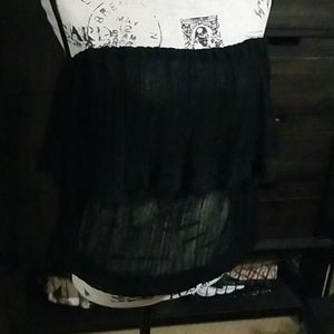 Sexy and fun sheer black strapless top. With the added ruffle layer, it adds a little more coverage to leave something to the imagination. (B5-6)