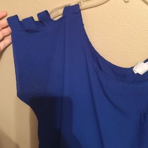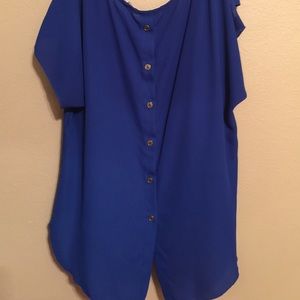 Sheer blue blouse. Hi-low top. Worn a decent amt but in good condition.