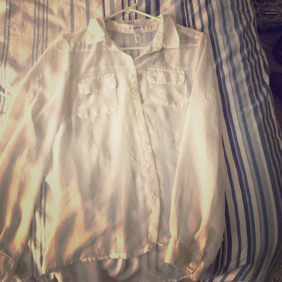 Sheer white button down. Sleeves can roll up. Size M.