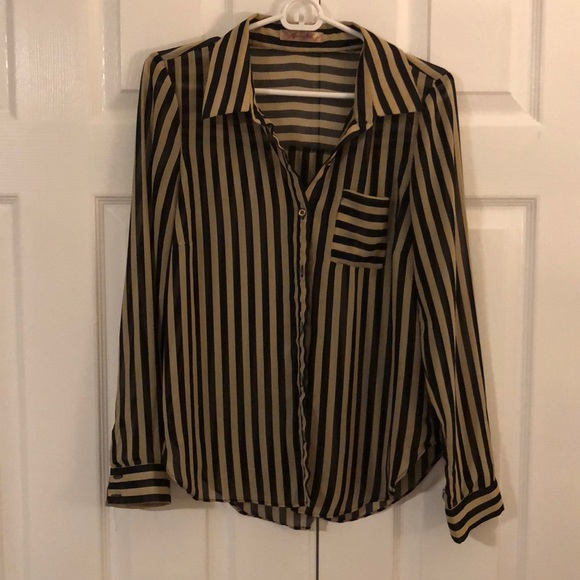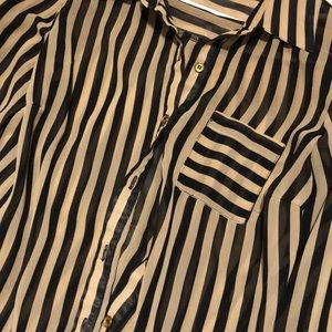 Great top for work with a tank under or for going out. Sheer button down, open back (swings open, isn’t always open)