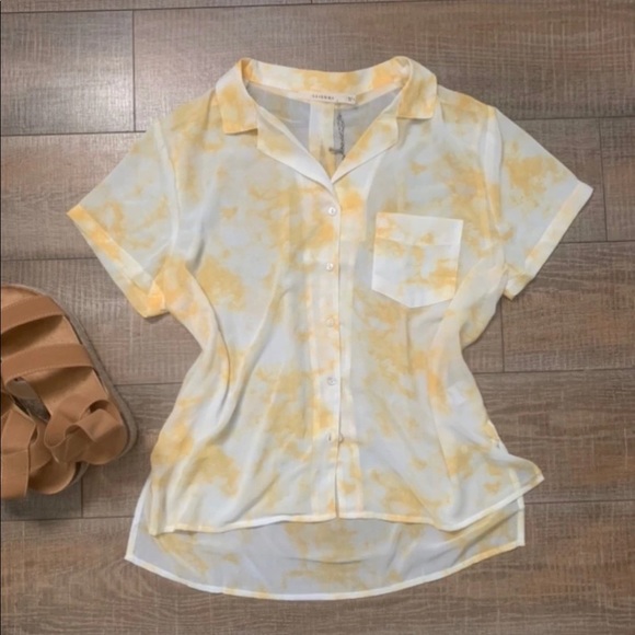 Sheer tie dye print button down blouse. Light material. Short sleeves. Brand new, never worn (No tags)