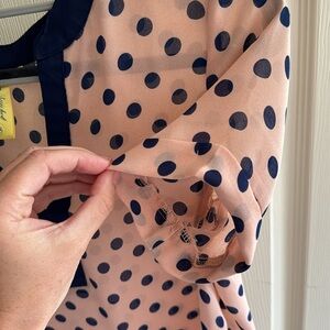 Top is from Francesca’s collection. It’s a very light pink and navy blue.