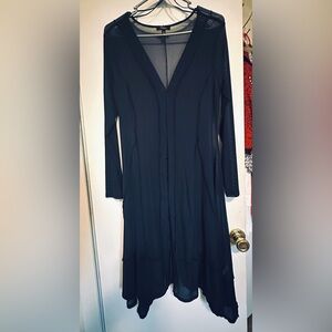 Navy blue sheer duster with hidden buttons