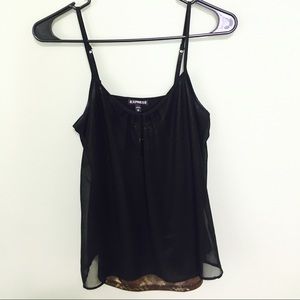 Size XS express tank top. Black sheer with a shimmery gold under layer