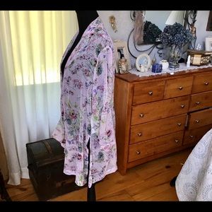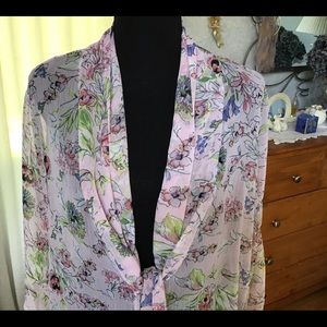 Such lovely soft pastel colors, this sheer jacket has a tie for closure in front. Full sleeves, loose fitting and comfortable!