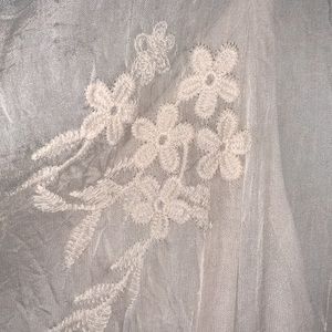 Beautiful embroidered flowers, silk/viscose blend. Lace bottom trim. No stains. All ivory. Attached tank underneath. Attached only at the shoulder, easily removed if you prefer a beautiful bra underneath. With faded, ripped jeans. Love it