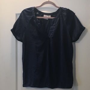 Sheer navy blue top. Great condition. Looks great with pants or shorts. Very light fabric. Size large