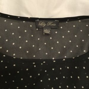 Sheer and light polka dot black long sleeve top. Super cute with an elastic band in the middle that gives a nice hour glass shape. Bought from Nordstrom.
