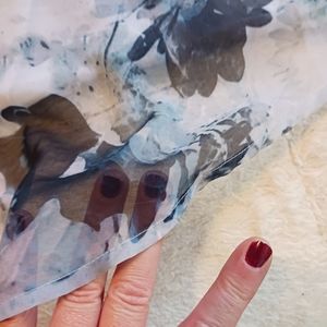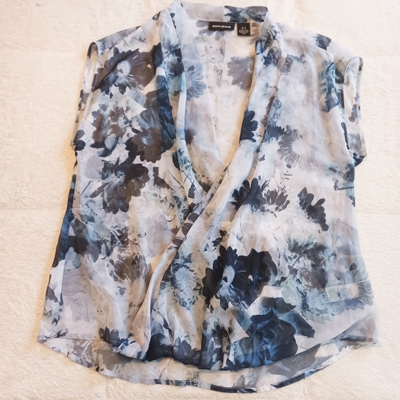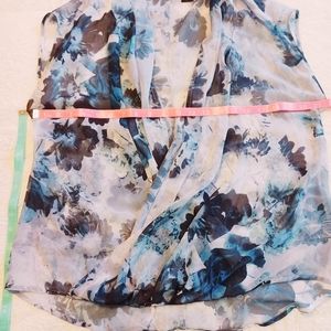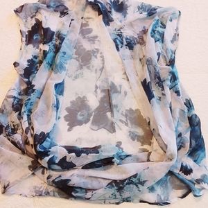 This is a sheer, sleevless top that slits down to the bottom. It has lose flowy fabric that allows you to play with and cover up more or open up.