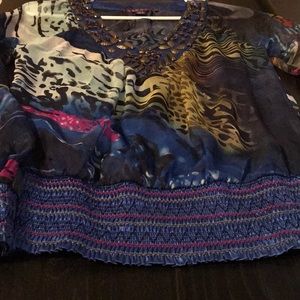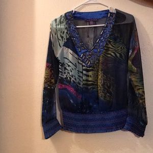 This blouse is sheer, so a camisole can be worn underneath. Good condition.