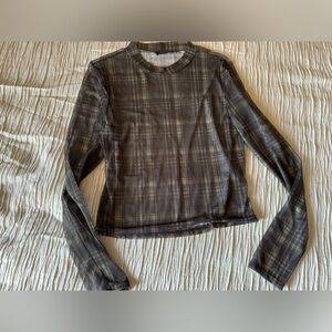 Sheer plaid top cream and brown