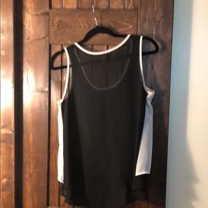 Black and white sheer tunic. Front is layered with the black Beneath, and the white on top. The front is cut shorter than the back.