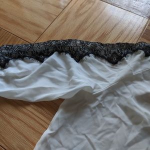 Sheer white and black flowy blouse