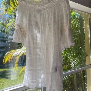 Sheer white boho top can be worn on or off the shoulder NWT 100% cotton XL