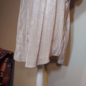 Mint condition! Ruffled neckline. Buttoned back. sz medium approx measurements laying flat: 28"L from shoulder to hem (23"L on sides) x 20"w chest. Beautifully designed.