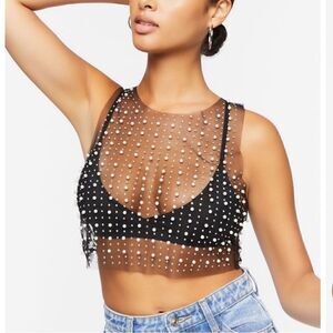 Sheer Mesh Beaded Black Crop Top NEW Size Medium